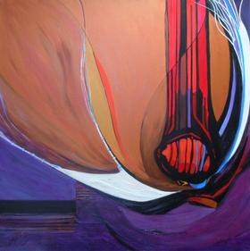 The yud originates from the partial black circle at the base of the painting representing shalom.